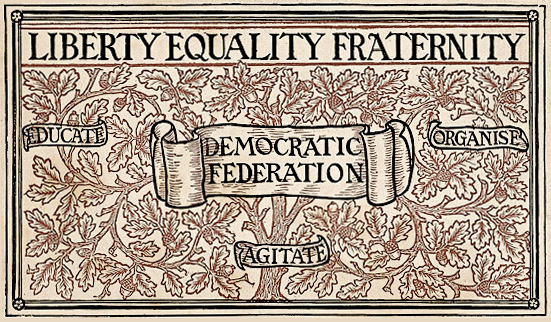 Ich bin überzeugt, dass einige in dieser Versammlung voller Unzufriedenheit und Erbitterung über die elende Anarchie des Eigennutzes sind, die das Jahrhundert des Kommerzes mit sich gebracht hat. Diesen biete ich eine Möglichkeit, den Privilegien ihrer Klasse zu entsagen, und zwar dadurch, dass sie durch die Mitgliedschaft in der Democratic Federation die sozialistische Propaganda unterstützen. Ich sehe mich geehrt, die Democratic Federation hier zu repräsentieren, von der ich glaube, dass sie als einzige Gruppierung in diesem Land den konstruktiven Sozialismus als Programm vertritt.