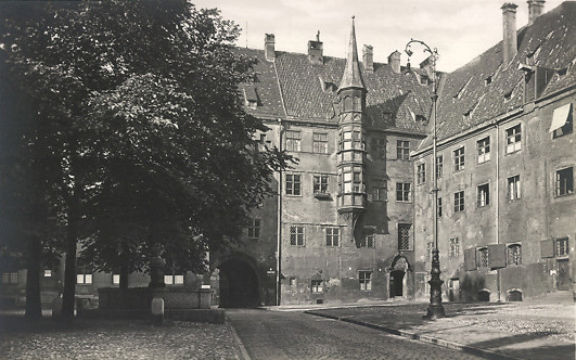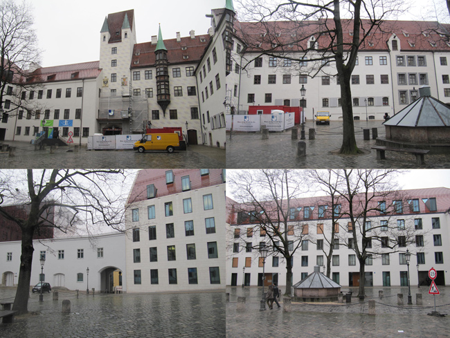 Eines der traurigen Beispiele aus neuerer Zeit: der Alte Hof in München (einstmals Residenz Ludwig des Bayern) um 1900 und nach 2000.