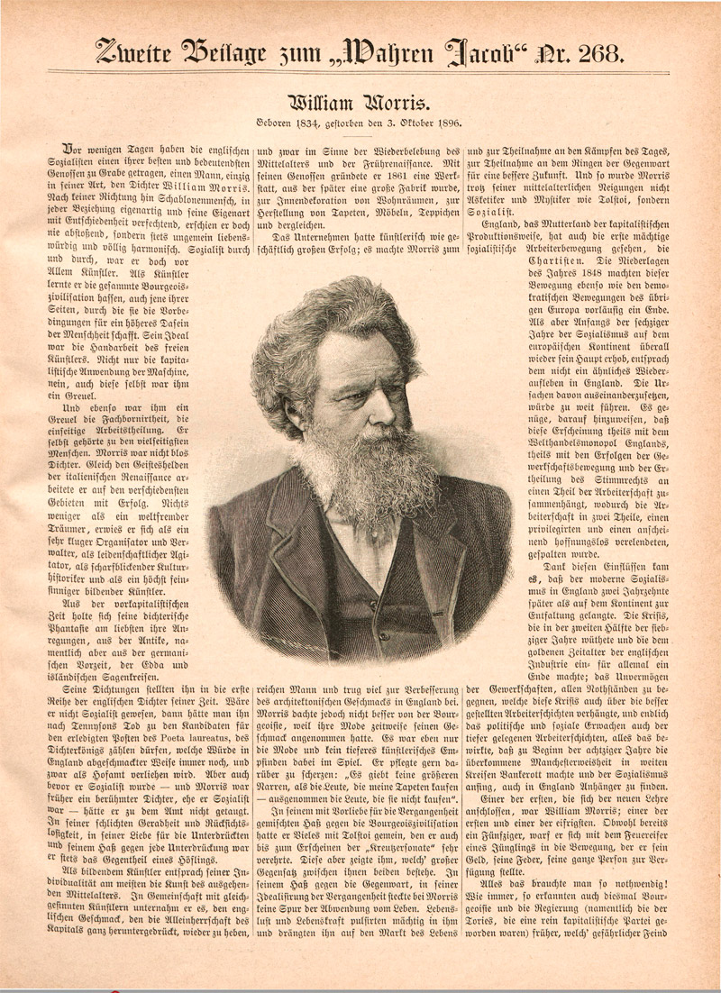 Nachruf auf William Morris in Der Wahre Jacob vom 27. Oktober 1896. „K.“ steht für Karl Kautsky.